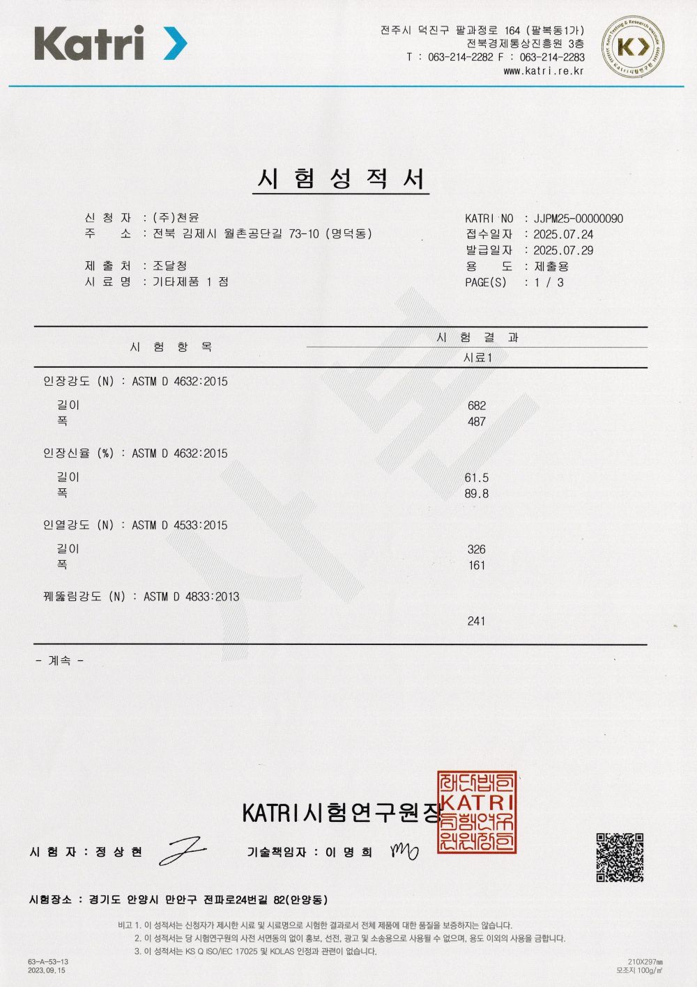 조달청 등록용 시험성적서