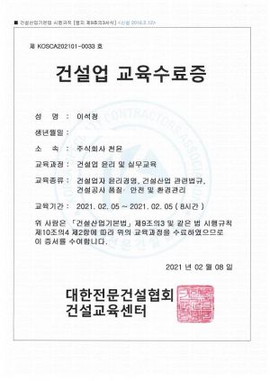 건설업 교육수료증